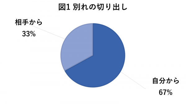 別れの切り出しについて調査したところ、自分から切り出した方は67%に対し、相手から切り出された方は33%。
