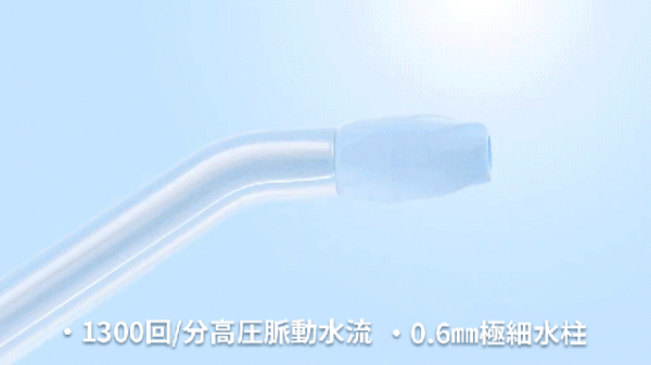 最大水圧100psiのパルス水流が1分間に1,300回噴射!直径0.6mmの極細水流で、歯間と歯周ポケットに詰まった頑固なプラークを徹底的にこそぎ落とします。