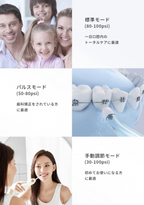 3種類のモードから調整が可能です。歯茎の状況やお好みに合わせて選択ください。