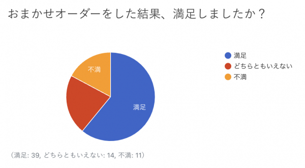 ■おまかせオーダーの満足度、6割以上が「満足」と回答。