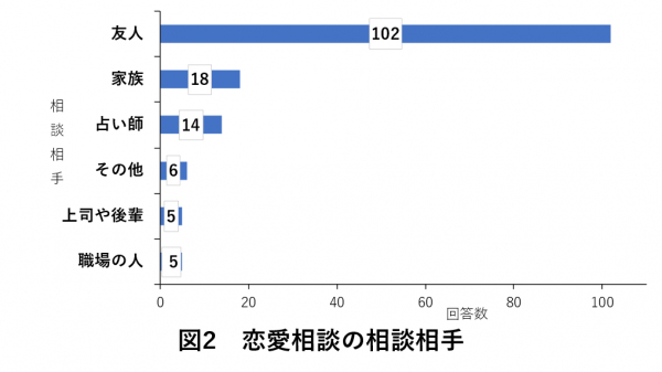 恋愛相談をする相手について調査したところ、「友人」という回答が最も多いという結果に。