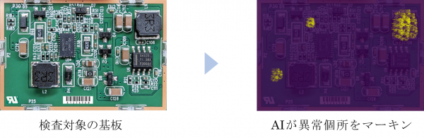 プリント基板は、一枚の板の表面に、ICチップや電子回路等の小さく細かい部品が多数配置された部品で、電子機器の多くに用いられています。プリント基板に正しく部品が配置されているかどうかの検品作業は、これまで専用の高価な検査装置を用いるか、人の目で見て行う場合がほとんどでした。近年はAIによる自動検品も行われていますが、AIに正しく検品させるためには、数百枚の良品画像と不良品画像による事前学習が必要で、大量の不良品画像の収集には手間と時間がかかるうえ、用意できる画像の種類によっては、検品の精度にばらつきが出てしまうといった課題がありました。