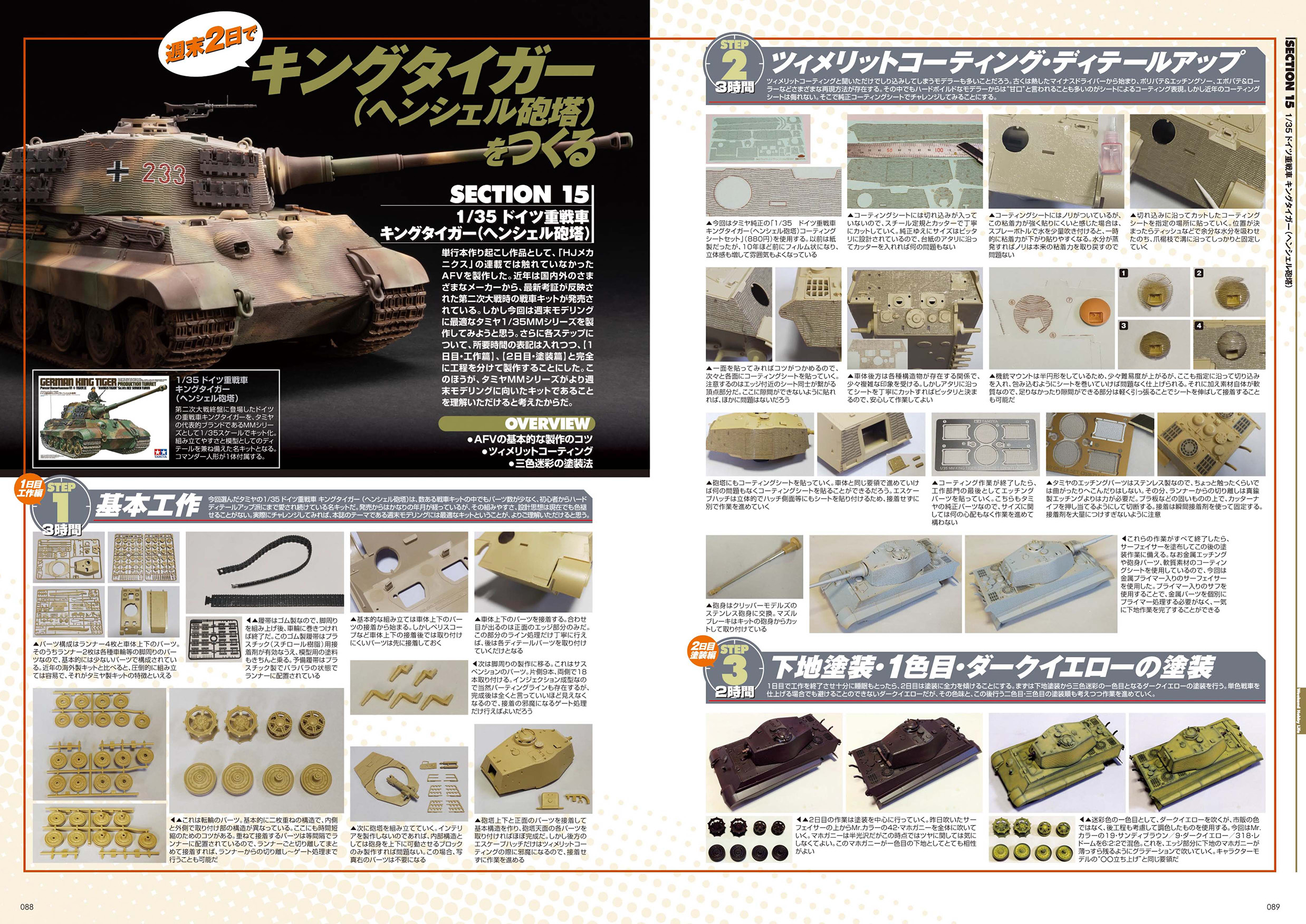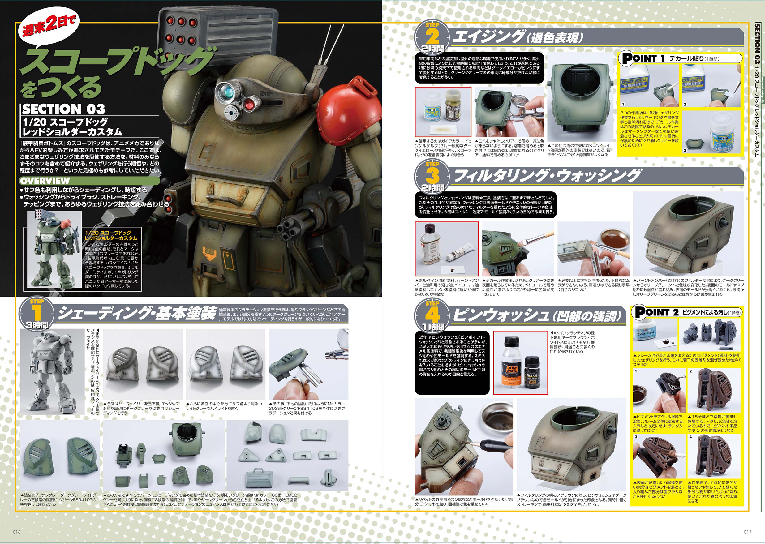 各プラキットにたっぷり6ページ(うちHow toパートが4ページ)を使い、時間ごとの製作ドキュメントを詳細な写真と解説文で分かりやすく紹介していきます。