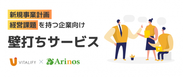このようなニーズにバイタリフィ、Arinosの両社で壁打ちにて経営課題解決に向けた取り組みをさせていただくサービスとなります。