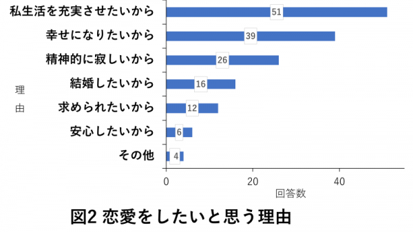 恋愛をしたいと思う理由については、「私生活を充実させたいから」という理由が最も多くみられました。
