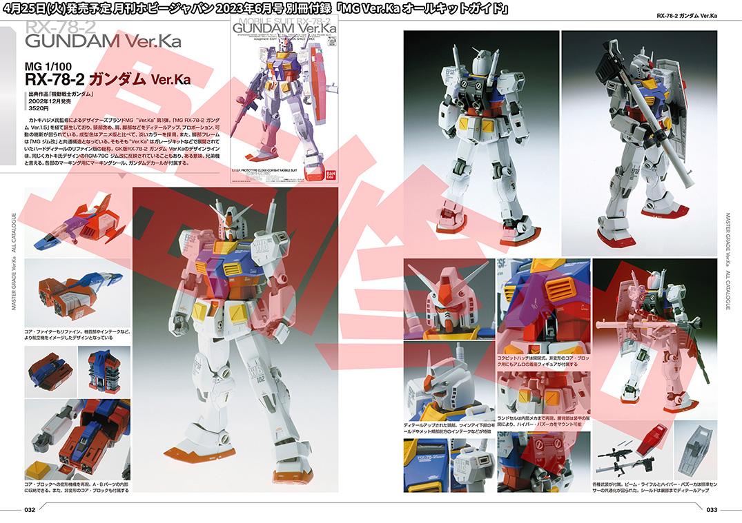 最後に4月25日(火)発売予定「月刊ホビージャパン 2023年6月号」の別冊付録「MG Ver.Ka オールキットガイド」のチラ見せ紹介もいたします!