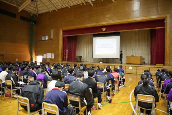 トータル100分間に渡る講演でしたが、生徒たちはメモを取るなど終始真剣に参加していました。