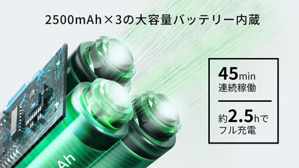 バッテリー:2500mAh×3