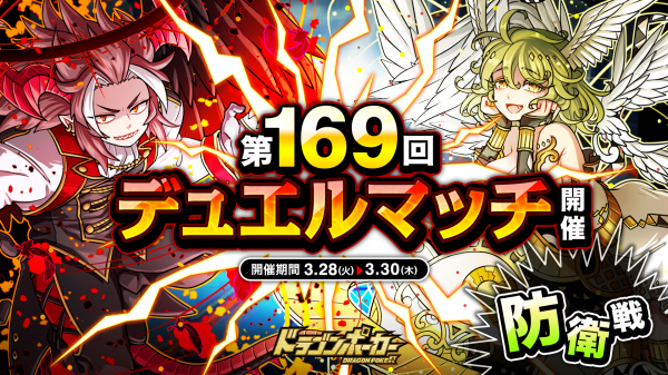 株式会社アソビズム(本社:東京都千代田区、代表取締役:大手智之)は、App Store・Google Playにて好評配信中のリアルタイム合体カードバトル『ドラゴンポーカー』で、2023年3月28日(火)より「第169回デュエルマッチ本戦」を開催いたします。