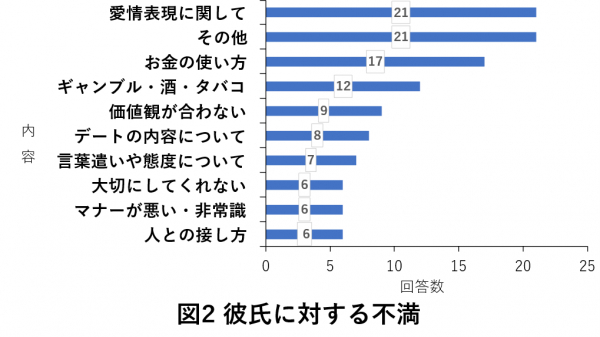 不満の内容について調査したところ、最も多かったのが「愛情表現に対して」と「その他」。