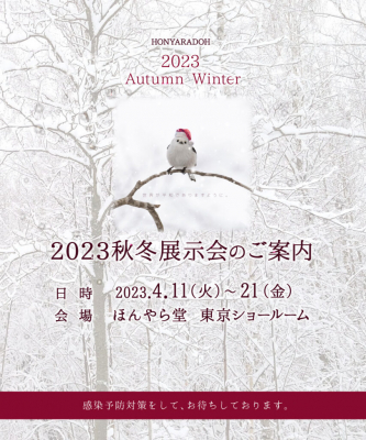 「心からほっとする健康と癒し」をコンセプトに商品を展開する株式会社ほんやら堂(本社:群馬県高崎市 代表取締役:藤永辰美)は、2023年4月11日(火)から4月21日(金)まで「2023秋冬展示会」を開催いたします。