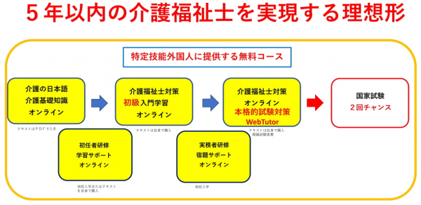 外国人介護職を介護の日本語教育から介護福祉士試験合格まで(初任者研修や実務者研修の学習サポート含む)の一貫した教育プログラムを思う存分活用できます。外国人支援に強い関心のある事業者は是非ご相談ください。ZOOM会議で詳しく説明させていただきます。