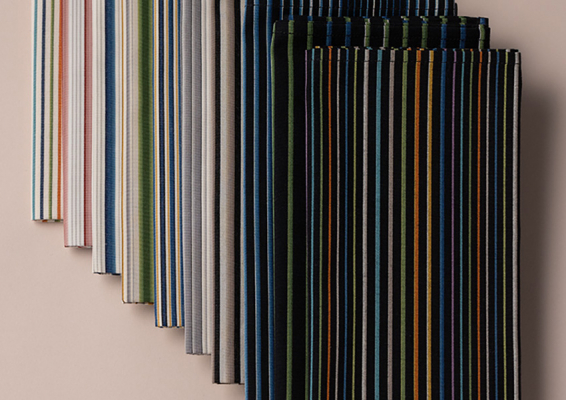 今や、人気は国内に留まらず海外ではKokura Stripesと称されるほど。北九州市内はもとより、国内外の様々なシーンを彩るまでになりました。ファッションやインテリアで、建築やアートで。あなたの日常を美しく、豊かに彩る小倉織の魅力を様々なシーンでお楽しみください。