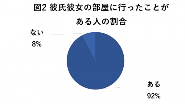 回答者のうち彼氏彼女の部屋に行ったことがある方は9割を占めていました。