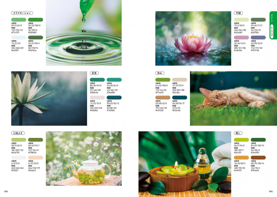 デザイン時にパラパラとめくれば、配色のアイデア帖として活用できます。