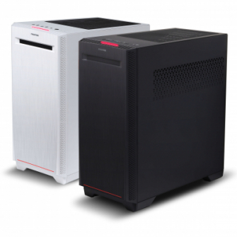 ヘアライン加工が施されたフロントパネルにワンポイントの赤色LEDを搭載し、シンプルかつエレガントなデザインです。冷却性能とカスタマイズ性に優れ、VGAアームホルダーを標準装備で大型のグラフィックスカードも搭載可能です。ケースカラーはクールな黒色とインテリアに馴染む白色から選択可能です。 [幅:約210mm x 高さ:約457mm x 奥行:約465mm]