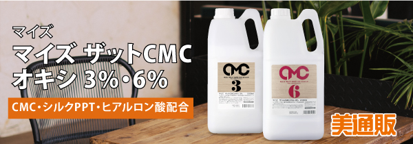 「マイズ ザットCMCオキシ」は、ほとんどのカラー剤に対応可能な汎用タイプの大容量オキシです。トリートメント成分としてCMC・ヒアルロン酸・シルクPPTといった毛髪補修成分を配合しているため、施術による髪のダメージを抑えるだけでなく、艶やかで手触りの良い仕上がりに導いてくれます。