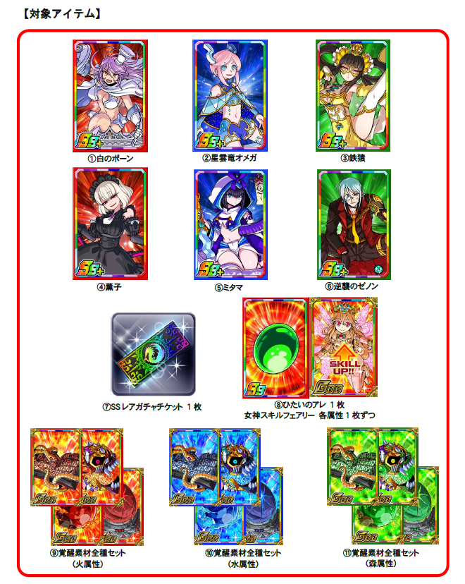 400リツイート達成:覚醒素材全種セット各属性 3枚ずつ