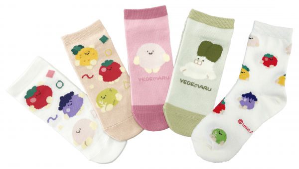 この度発売されるべじまるの靴下は全て作家うめぼしちゃんによる描き下ろしのオリジナルデザインででこだわりの仕上がりとなっており、お子様から大人まで幅広い方にお楽しみ頂けるデザインです。