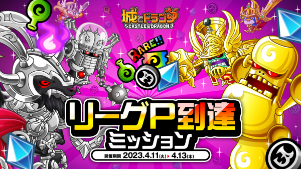 株式会社アソビズム(本社:東京都千代田区、代表取締役:大手智之)は、App Store・Google Playにて好評配信中の『城とドラゴン』で、「リーグ」および「リーグP到達ミッション」を2023年4月11日(火)より開催いたします。