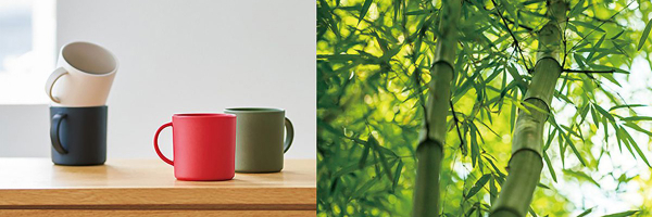 バンブーファイバーとは、竹の繊維をパウダー状にして固めたものです。自然素材の竹を混ぜることで、合成樹脂の使用量を減らした、環境に優しい素材です。