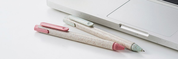 販促グッズの定番、名入れボールペンを環境に優しい素材に替えられる企業も増えているようです。