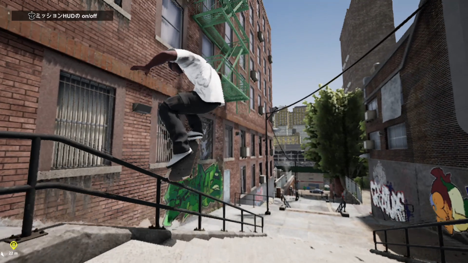前後それぞれの足を2本のスティックで操作し、重心を細かくコントロールする非常にリアルな操作性。さらに、滑らかさと没入感を重視して開発された、リアルな物理エンジンを採用しました。実際のスケボーと同じように、初めてのキックフリップを成功させるためには長い時間の練習が必要となりますが、一度マスターすれば自由自在に技を繰り出すことが可能になります。