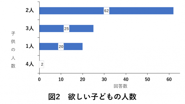 子供が欲しいと回答した人の中で、欲しい子供の人数について聞いてみたところ、仮説の通り「2人」という回答が最も多いことが明らかになりました。