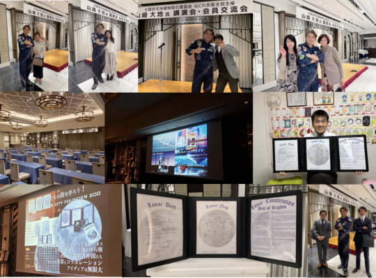 当日は、世界の民間宇宙旅行産業の最新情報を交えながら、さまざまな民間宇宙船についてや、月の土地を利用した月面不動産業のコラボレーションについてなど、約2時間にわたり講演を行いました。大阪府宅地建物取引業協会会員の約40名が参加しました。その後、名刺交換など、立食をしながら交流会が開催され、さらに深く民間宇宙ビジネスについて、参加者の方々と話しをしました。