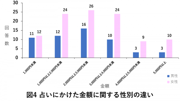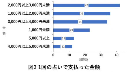 1回の占いにかけた金額について調査したところ、「2,000円~3,000円」への回答が最も多くみられました。