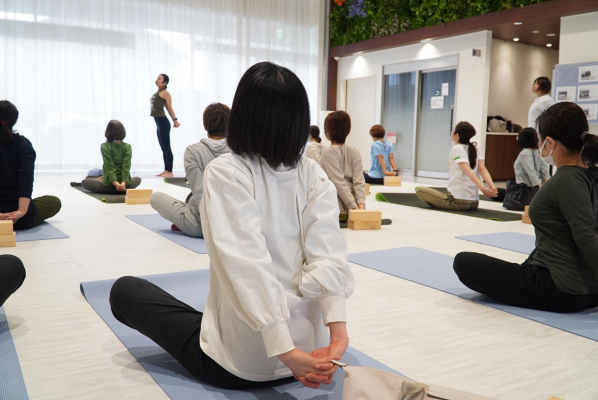 昨年のトヨタヨガフェスタで毎月開催していた「骨盤調整ヨガ(R)」今年初開催となり、昨年体験された方の参加、そしてさらにご友人を誘って参加される方が多く見受けられました。身体の不調を改善したいと思われている参加者が多く、レッスン終了後には楽になったと喜ばれました。