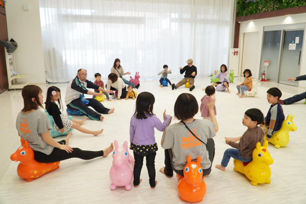 パパと一緒に参加される親子が増えている「ロディヨガ(R)」パパが一生懸命ヨガをする姿に子ども達は大喜び。ロディを使ったゲームでは、「パパ対子どもで対決したい」とリクエストされます。子どもの喜ぶ姿に負けじとパパ達もゲームに本気で取り組んでいました。