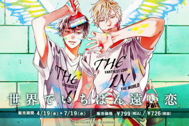 音を知らない「五十鈴」と音を奏でる「十嘉」、偶然出会った二人は、互いに“無いもの”を楽しむかのように距離を縮めていく。甘く切なく、暖かい気持ちになれると話題の「世界でいちばん遠い恋」が「カワセルくじ」に登場です!S賞アクリルブロックは「麻生ミツ晃」先生の描き下ろしイラストを使用!着用しているお揃いのTシャツが作品名になっているのもポイントです!!A賞以下も作中の印象的なシーンを切り抜いたものとなります!3ヶ月限定での販売となりますのでお見逃しなく。
