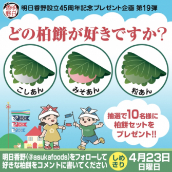 2023年4月17日より、45周年キャンペーンの第19弾「どの柏餅が好きですか?」を開始しました。