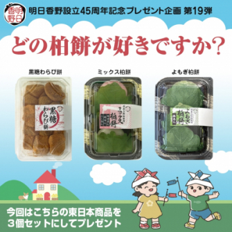 今回のキャンペーンでは明日香野東日本の柏餅を含むおすすめ和菓子をセットにして合計10名様にプレゼントいたします。