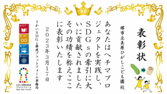 両園がそれぞれ、さかいSDGs推進プラットフォーム事務局より表彰状を授与されました。