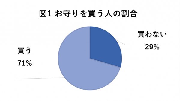 お守りを買うかどうかについて調査したところ、お守りを「買う」と答えた人は71%、「買わない」と答えた人は29%という結果になりました。