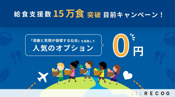 「褒める」ことで組織の課題を解決するチームワークアプリ「RECOG」を開発・運営する株式会社シンクスマイル(本社:東京都、代表取締役:新子明希)は、「感謝と笑顔が循環する社会」を目指して給食支援数15万食突破目前キャンペーンを実施することをお知らせいたします。