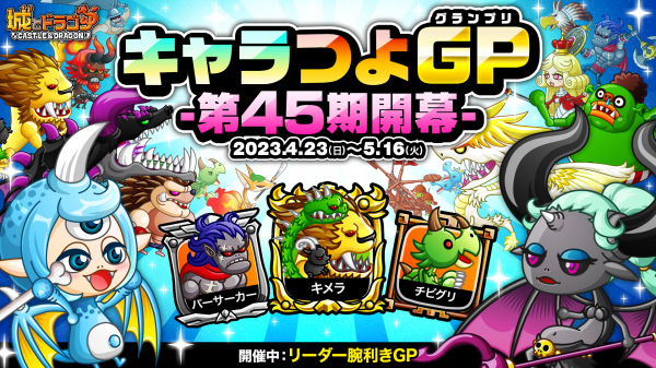 株式会社アソビズム(本社:東京都千代田区、代表取締役:大手智之)は、App Store・Google Playにて好評配信中の『城とドラゴン』で、2023年4月23日(日)より「キャラつよグランプリ第45期」を開催することをお知らせします。