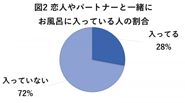 現在、恋人やパートナーと一緒にお風呂に入っている方は全体のうち28%、入っていない方は72%を占めていました。