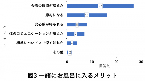 一緒にお風呂に入っていると回答した方に、恋人やパートナーと一緒にお風呂に入るメリットについて回答を求めました。