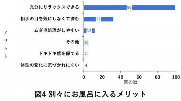 恋人やパートナーと一緒にお風呂に入っていない方には、別々にお風呂に入るメリットについて伺いました。