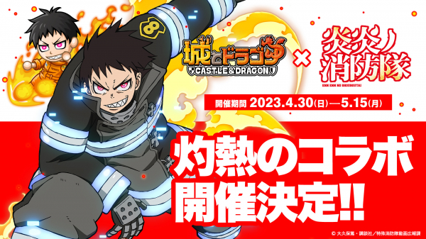 株式会社アソビズム(本社:東京都千代田区、代表取締役:大手智之)は、App Store・Google Playにて好評配信中の『城とドラゴン』で、2023年4月30日(日)よりTVアニメ『炎炎ノ消防隊』との初のコラボイベント開催が決定したことをお知らせいたします。