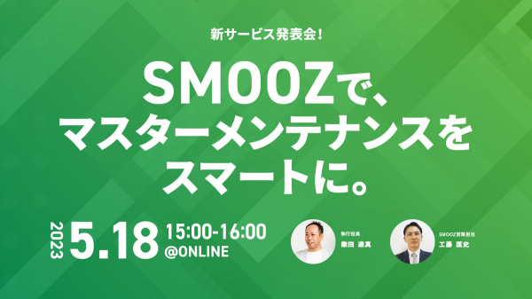 SMOOZのリリースに伴い下記セミナーを開催いたします。新規でのシステム開発をご検討中の方や、システム開発コストの低減、マスターメンテナンス業務で苦労さている方はぜひご参加ください。