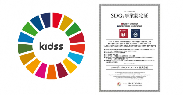 「kidss」はSDGs目標「4質の高い教育をみんなに」「17 パートナーシップで目標を達成しよう」に該当する事業として世界初のSDGsスポーツ教育プログラムに認定されております。