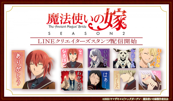 2023年4月6日より放送中のTVアニメ「魔法使いの嫁 SEASON2」の記念すべきLINEスタンプ第1弾がインクルーズより配信開始!日常的に使いやすいセリフが盛りだくさん!魅力的なキャラクター達とトークを盛り上げよう!是非、LINEスタンプでもTVアニメ「魔法使いの嫁 SEASON2」の世界観をお楽しみください。