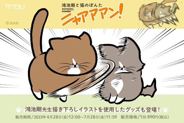 株式会社インクルーズ(東京都渋谷区、代表取締役社長 山﨑 健司)が企画・運営するフィジカルグッズのオンラインくじ「カワセルくじ」にて、4月28日(金)より、「鴻池剛と猫のぽんたニャアアアン!」のくじが発売開始になりましたことをご報告させていただきます。