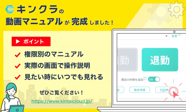 各種アプリ開発やITアウトソーシング事業、IT人材教育研修事業を手掛けるCLINKS株式会社(本社:東京都中央区、代表取締役:河原浩介)は、クラウド型勤怠管理システム「キンクラ(勤怠管理クラウド)」をより快適にお使いいただくため、無料でご覧いただける動画マニュアルを本日2023年4月27日にヘルプサイトに公開いたしました。