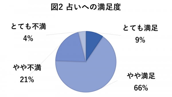 不満と回答した方はおよそ3割。今回の調査の中では、占いに対して満足している割合が高いことが明らかとなりました。