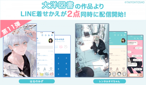 大洋図書×株式会社インクルーズが贈るLINE着せかえシリーズ第11弾、fu先生の「はるのみず」、らくたしょうこ先生の「レンタルタマちゃん」が2点同時に配信開始です!